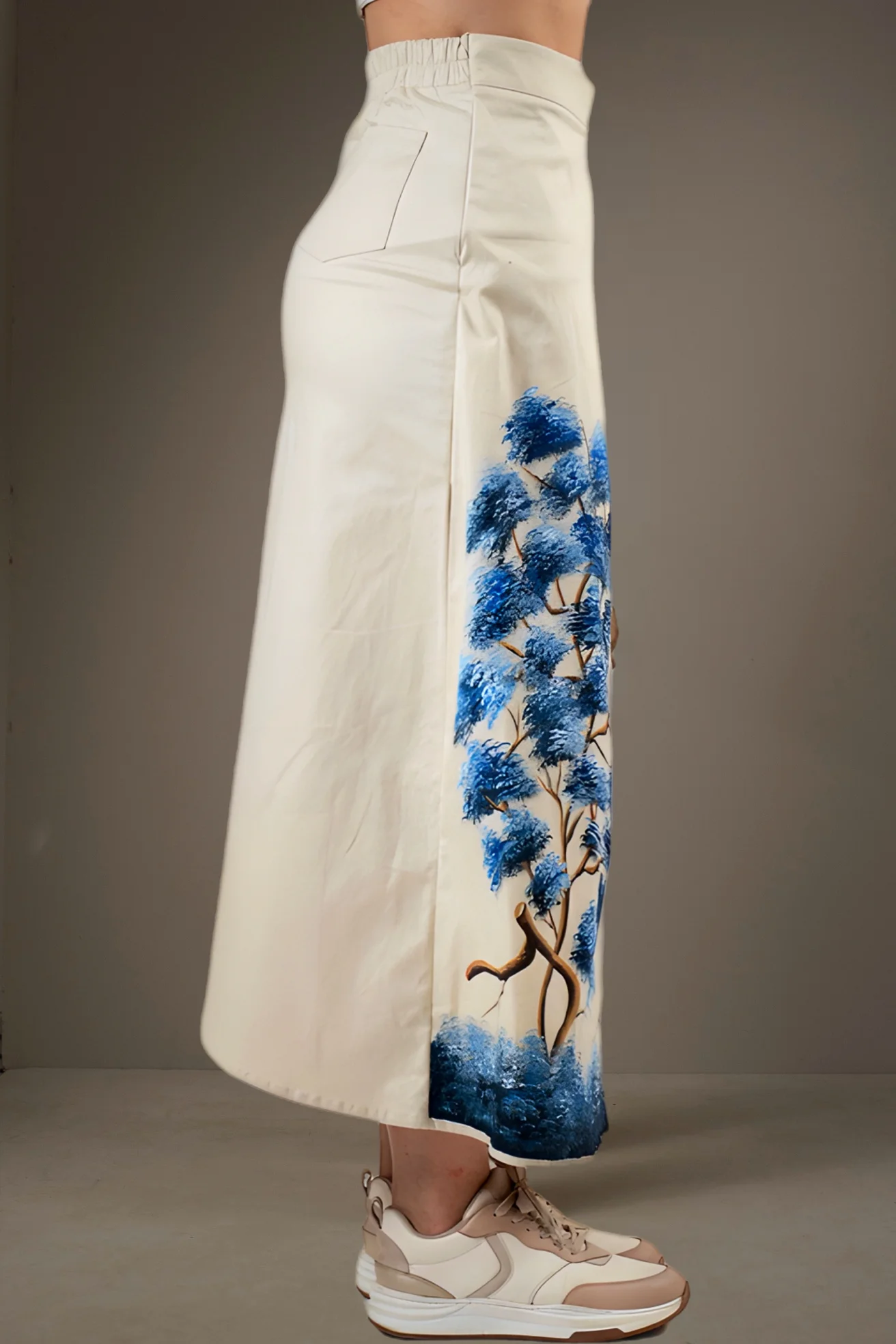Falda larga | Abertura Frontal | Irregular | Drill | Pintada a Mano | Color Beige